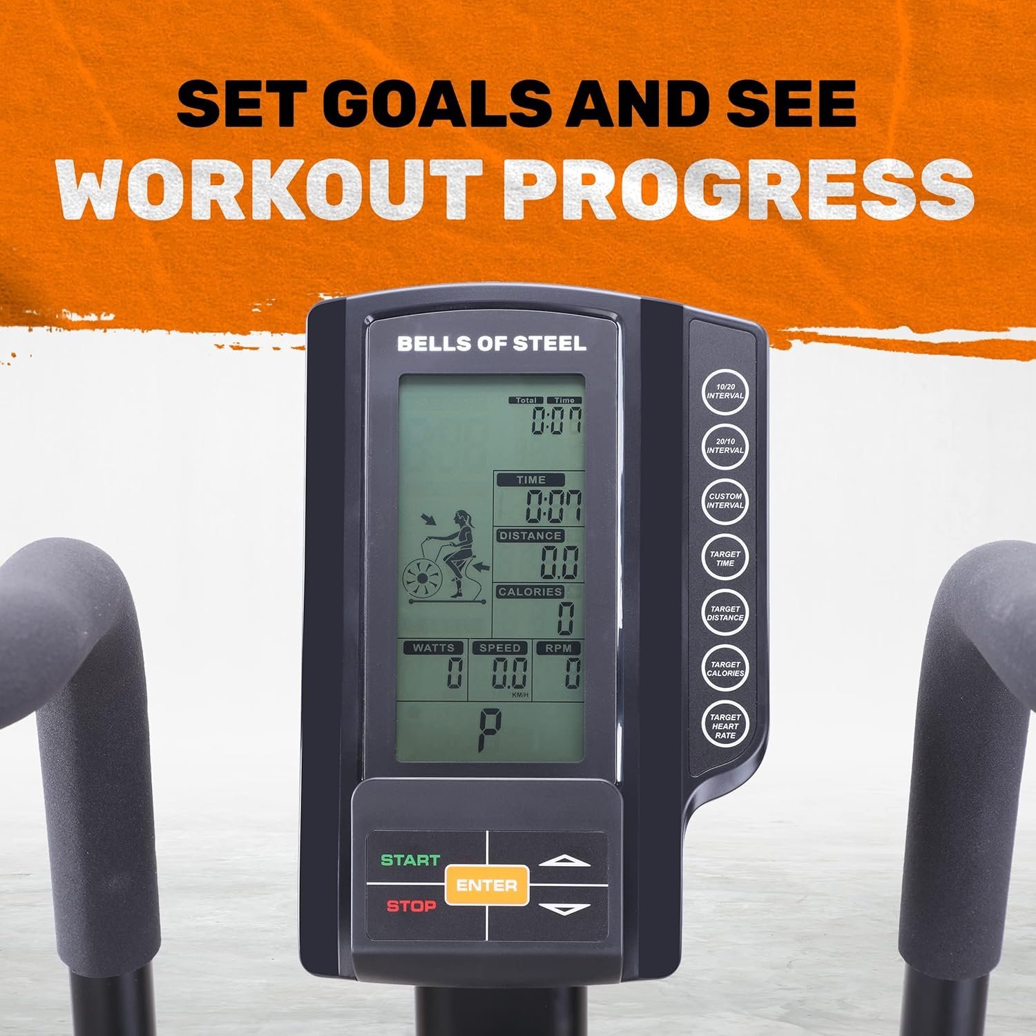 - What’s in the Package – Your new Bells of Steel Blitz Air Bike. Includes removable wind guard, bottle and phone holder, comfy seat, and pegs.