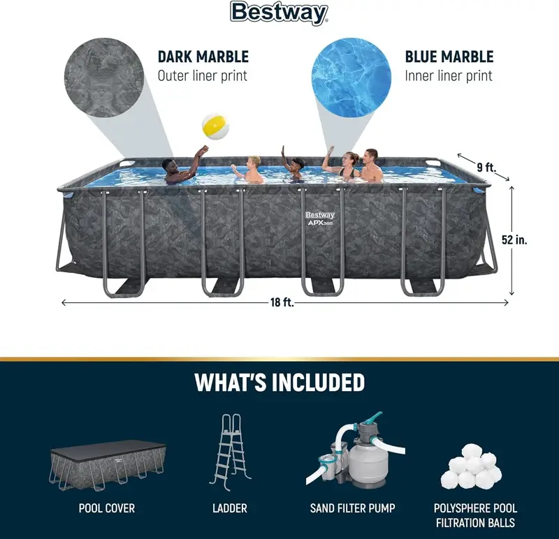 Bestway APX 365 18′ x 9′ x 52″ Rectangular Above Ground Swimming Pool