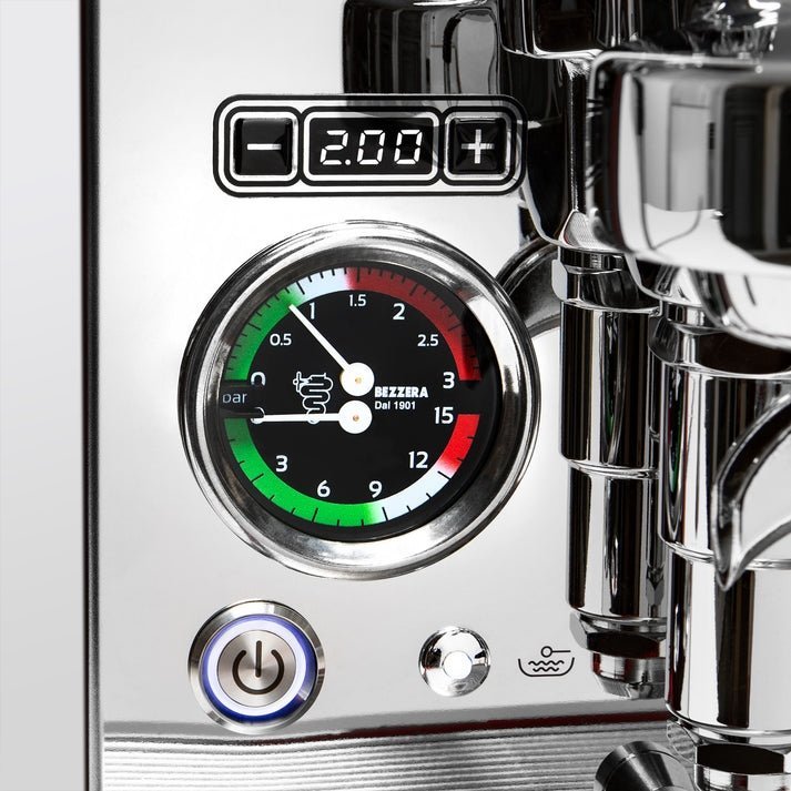 While brewing, water flow from the pump to the group can be controlled via the E61 flow control device. Featuring a design unique to Bezzera machines, the oversized knob makes profiling flow simple and ergonomic, allowing you to repeat your desired extraction profiles with ease.