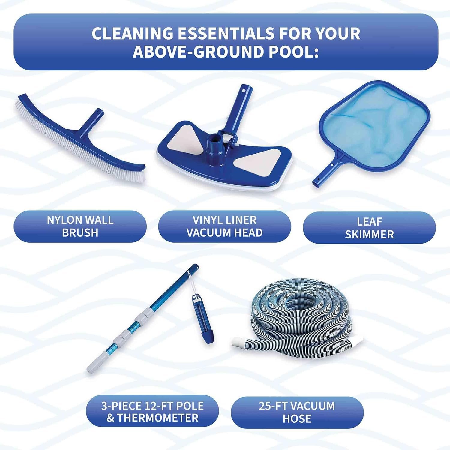- COMPLETE ABOVE-GROUND POOL PACKAGE – The San Pedro 52-in deep steel-walled above ground pool offers a premium backyard swimming experience. The set includes an overlap liner, skimmer, sand filter system, A-frame safety ladder, and a maintenance kit.