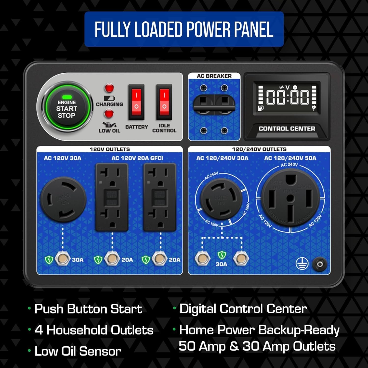 - Push Button Start and Remote Start: Turn on your generator with a simple push of a button, or use the remote to conveniently start your generator from a distance.