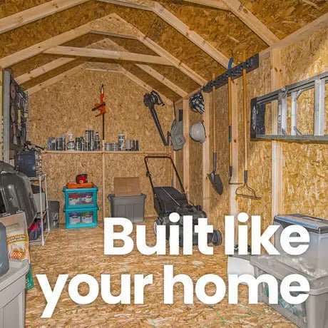 With 7″ tall sidewalls, ample headroom, and convenient storage options for tools and equipment, this shed is practical and functional.