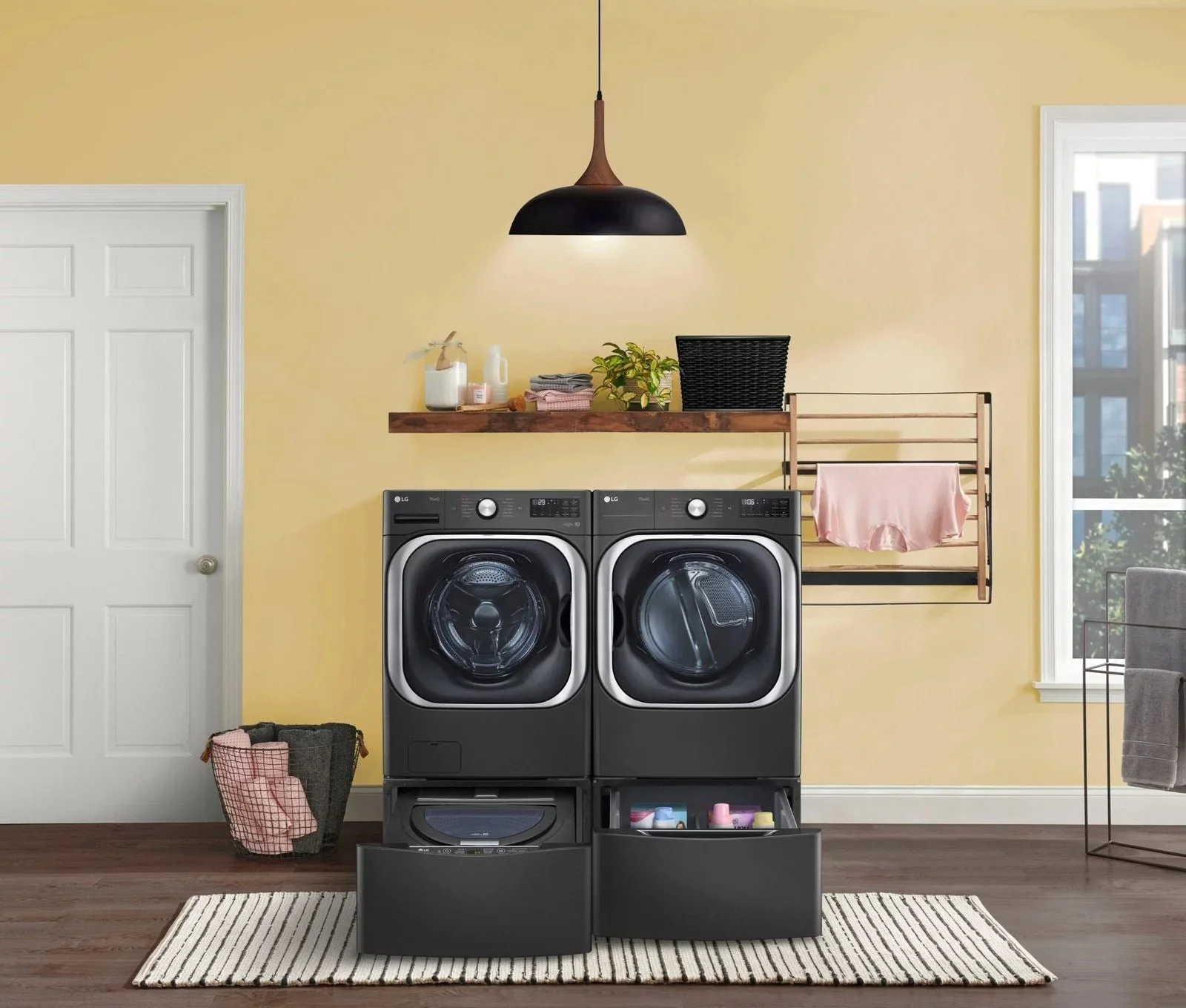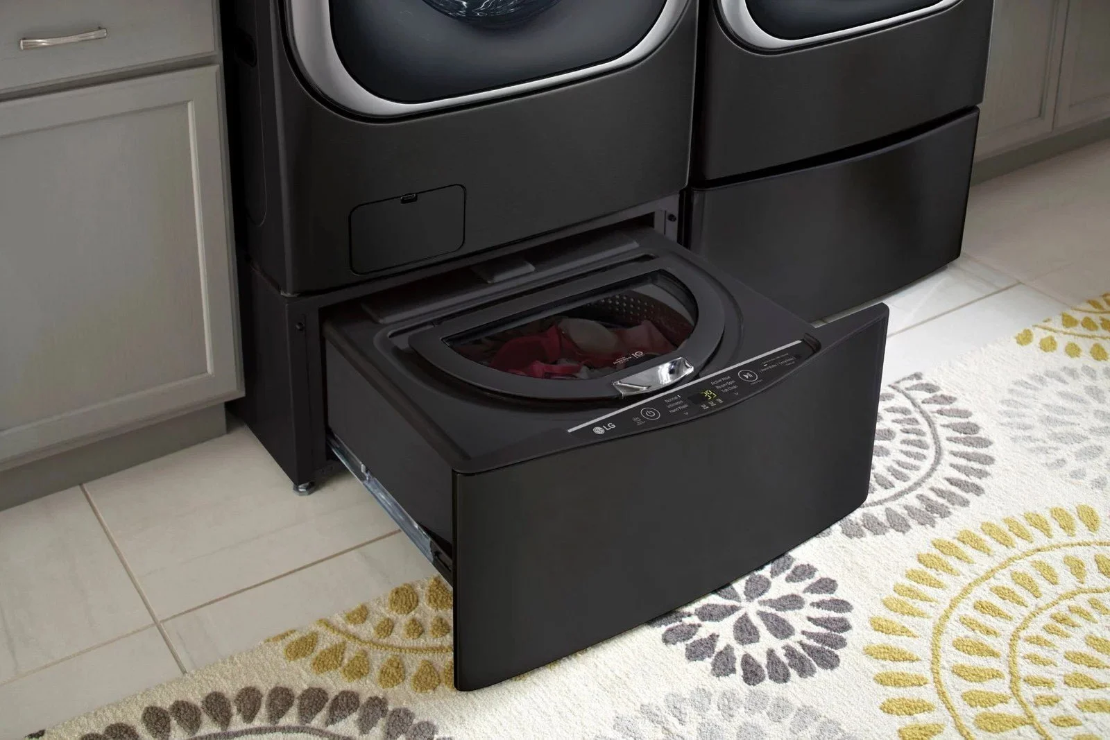 LG – SideKick 1.0 Cu. Ft. High-Efficiency Smart Top Load Pedestal Washer with 3-Motion Technology – Black steel