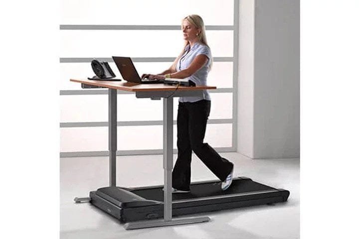 The LifeSpan TR1200-DT3 is our top selling walking desk treadmill base and console, designed to support single users or small teams. The compact treadmill fits under standing desks, making it easy to convert your standing desk into a treadmill desk. Upgrades from the TR800-DT3 include a larger motor, 2” wider walking belt and a low-profile design. The portable console is small enough to fit discretely on your desktop and still provide all the features you need, including readouts for steps, time, distance, calories and speed. The TR1200-DT3 walking treadmill is durable enough to share with coworkers and quiet enough to keep it all to yourself. DESIGNED FOR THE OFFICE Refined, contemporary design and long-lasting construction make the TR1200-DT3 the perfect addition to your office. Quiet operation lets you stay respectful of coworkers while you walk for miles each day without impacting productivity. High-quality components suppress mechanical noise and subdue vibration, keeping your focus on the task at hand. Whisper-Quiet 2.25 HP Continuous-Duty Motor 6 Impact-Absorbing Shocks Dampen Walking Noise Sturdy Construction Supports Up to 350 lbs. YOUR DESK, OUR TREADMILL The compact under-desk treadmill guarantees a perfect fit and easy placement under your standing desk. Since the step-up height of the walking desk treadmill will take from the available height range of your standing desk, the low 4.6? height will help you get the optimal ergonomic position from your desk. Fully Assembled Out of The Box Low-Profile Design Fits Under Tight Spaces Easily Roll the Treadmill Under Your Desk A LEGACY OF INNOVATIONS Integrated Step Counting Intelli-Guard? Safety Technology Customizable Personal Settings Business savvy and wellness ready, LifeSpan technologies are devoted to improving your experience. Onboard Intelli-Step technology detects each foot step taken, keeping you aware of your daily step count. The integrated Intelli-Guard safety feature ensures the treadmill only operates when you are actively walking supporting a safe work environment. Display Red LED display is easy to read even when positioned at an angle. Use the mode button to select which readout you want to view. Console Readouts Distance traveled, calories burned, time, step count and belt speed Personal Settings Tailor the treadmill desk to meet your needs. Set your preferred maximum speed to either 2.0 or 4.0 MPH, silence beeps and alerts, resume previous speed, switch units of measure, and more. Intelli-Step™ Step counting feature works like a pedometer and counts your steps while you walk. Intelli-Guard™ Your safety is important to us, Intelli-Guard automatically pauses the walking belt when you step off. USB Charging Ports A USB charging port is accessible from the back of the console to charge your mobile devices.Space Planning Download PDF DimensionsTreadmill: 63″ L x 28.5″ W x 7.25″ H Console: 12.5″ W x 3″ D x 2″ HStep-Up Height4.6″Belt Size20″ W x 50″ LBelt Type2-PlyMarked BeltWith a motor so quiet, treadmill belt markings help you and coworkers identify when the belt is moving.Speed0.4 – 4.0 MPH (Max. speed setting defaults to 2.0 MPH but can be set to 4.0 MPH if desired)InclineNot AvailableDeck Suspension6 Independent Compression ShocksDeck3/4″ Phenolic with BraceSide RailsNon-Slip PlasticTransportTreadmill has 2 front-mounted transport wheels for easy mobility.Drive Motor2.25 HP High Torque Continuous Duty DCMax. User Height350 lbs.Product WeightTreadmill: 114 lbs. Desk: 3 lbs.WarrantyFrame: Lifetime | Motor: 3 Years | Parts: 2 Years | Labor: 1 Year