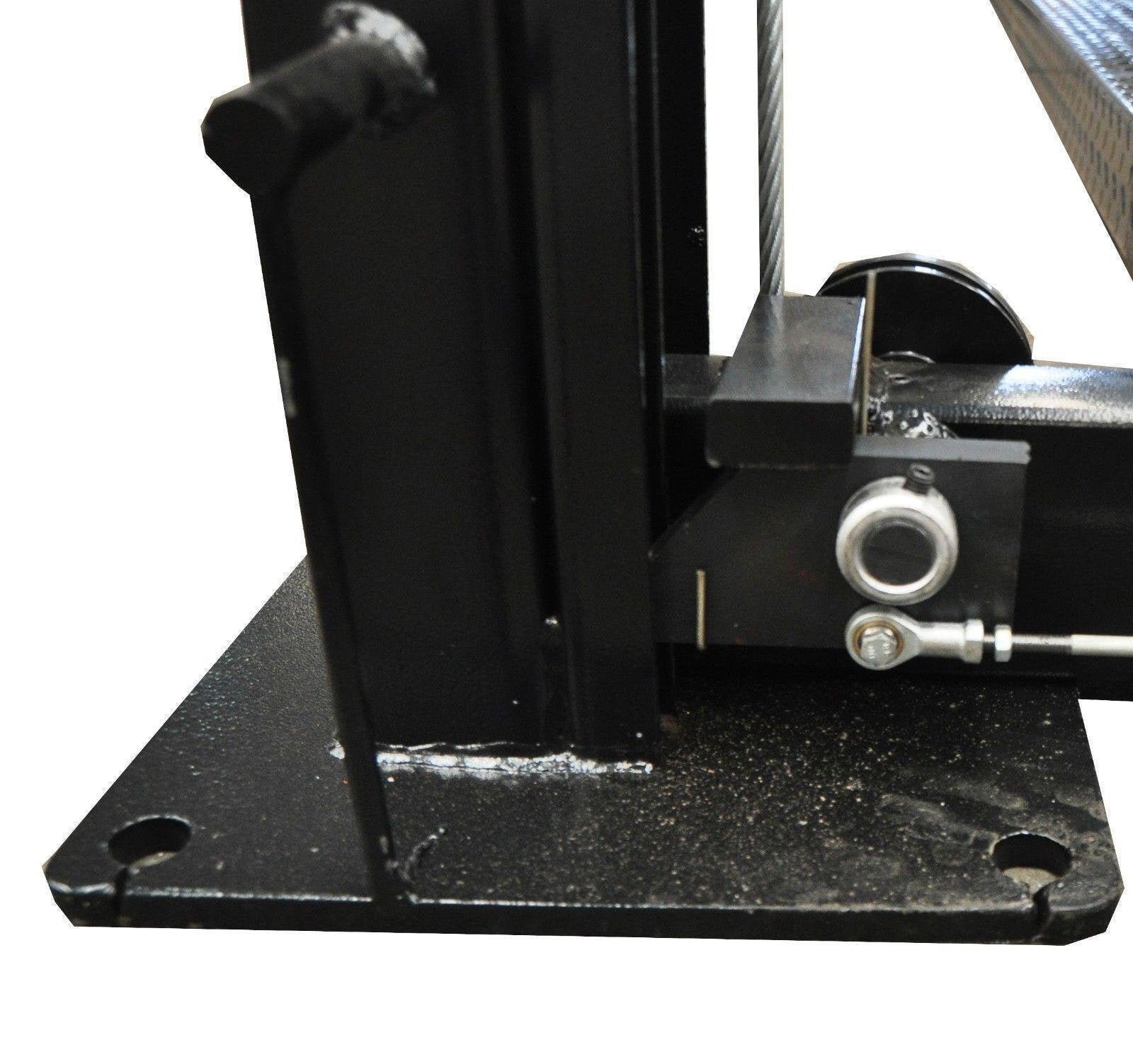 The Mayflower Blacksmith Four Post Lift Pro 8000 is a heavy-duty car lift designed for storage and service. It has a capacity of 8000 lbs and features a four post design that provides stability and strength for lifting vehicles. The lift can be used for storing vehicles and for performing maintenance and repair work on cars and trucks. The Pro 8000 has a clear floor design for easy access to the undercarriage and wheels, and its height can be adjusted to accommodate a wide range of vehicles. The lift is designed for easy and safe operation, with a locking mechanism to keep vehicles secure while lifted and an automatic safety lock system to prevent accidental lowering of the lift. Specifications : Usage: Parking/Storage/Service Driving Mode: Heavy Duty Single hydraulic cylinder mounted underneath runway Voltage: 110 Voltage Lifting weight capacity: 8,000 lbs Lifting height max: 72″ Clearance Under Runway: 69″ Overall Length: 175″ Runway Length: 165″ Overall Height: 84″ Overall Width: 106″ Width between Posts: 99″ Drive Thru Width: 77″ Lifting Time: 40 sec Motor: 110V 60Hz 1 Phase Single point safety lock release with built-in 10 locking positions Relief valve built in power pump to prevent overloading Ultra high molecular self lubricating nylon slider that ensures carriage smooth moving up and down Floor concrete requirement: 4″ Depth, 3000 PSI Rebar Reinforced Jack tray, set of 3 drip trays, and approach ramps included Poly caster kit included Black Powder coated finish provides superior resistance against corrosion. Shipping Weight: 1550 LB