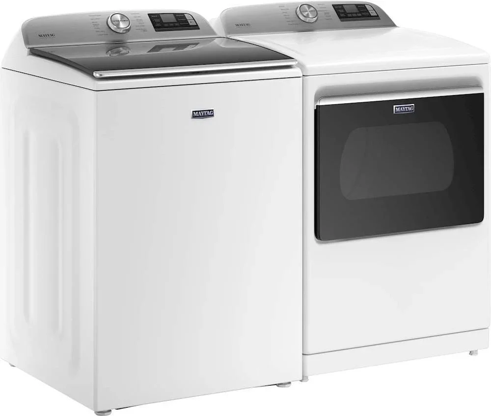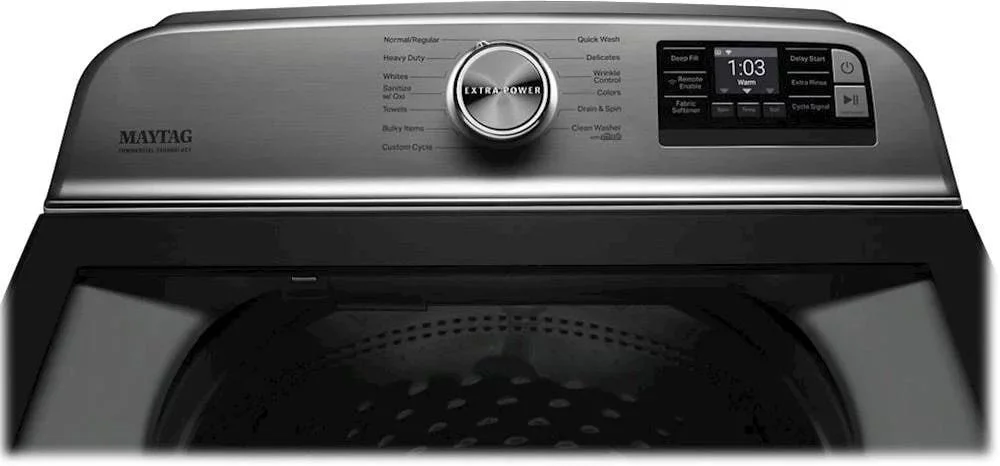 Get the heavy-duty washing machine that delivers powerful cleaning driven by the Heavy Duty cycle with Extra Power button. The Extra Power button boosts stain fighting on any wash cycle, including the Quick Wash cycle. Optional smart washer features such as remote start and cycle notifications help you efficiently manage laundry from anywhere. Features Extra Power button Some stains dissolve best in hot water. Others in cold. With the push of a button, Maytag fights both in a single load. The Extra Power button boosts stain-fighting performance on any wash cycle with a dual-temperature wash. Smart capable appliance Stay in control, and manage laundry from anywhere with optional smart features. Use the Maytag app to remotely start or stop your appliance, get end-of-cycle notifications, and troubleshoot select issues. Deep Fill option For more water when you want it, select the Deep Fill option to fill the wash basket with your choice of deeper water levels. The extra water works with robust wash action to effectively break down and rinse away everyday tough mess. Built-in water faucet The built-in water faucet is engineered for the extra dirty. Use it to rinse away loose soils as clothes go in, or fill the tub for up to a three-hour soak before the cycle begins. Delay the start of the wash cycle to take loads straight from soaking to washing without coming back to the washer. Quick Wash cycle The Quick Wash cycle cleans small, lightly soiled loads in 30 minutes with extra high spin speeds, pairing nicely with the Quick Dry cycle on matching Maytag dryers to get your clothes ready in no time. 10-year limited parts warranty on the drive motor and stainless steel wash basket. Slow-close glass lid The slow-close glass lid offers a clear view of laundry and quiet, precision closing. American pride Proudly assembled in Clyde, Ohio, U.S.A. Direct-drive motor The direct-drive motor not only has the power to handle large loads, it’s backed by 10-year limited parts warranty. Advanced Vibration Control The powerful shock absorbers and springs of Advanced Vibration Control reduce vibration to help keep disruptive noise to a minimum, load after load. Wrinkle Control cycle The Wrinkle Control cycle is specially designed to help prevent wrinkles with warm water and low spin speeds. Power impeller The Power impeller attacks everyday tough stains in a single wash with a reverse wash motion, triple action spray that keeps clothes thoroughly saturated with water, and concentrated detergent throughout the cycle. Auto Sensing Adjusts the water level for each load to provide efficient cleaning. Stainless steel wash basket The stainless steel wash basket is designed for years of washes and built with sturdy materials to last for the long haul. It’s also backed by 10-year limited parts warranty. Cycle Memory Customize each cycle the way you want with Cycle Memory, which stores your last setting choices and then applies those options the next time you use that cycle. Clean washer with affresh cycle Run the affresh cycle every 30 washes with an affresh washing machine cleaner tablet or liquid chlorine bleach to thoroughly clean the inside of your washer. Requires fill hose (not included) for standard hook-up upon delivery Specifications Key Specs Product Height: 43 7/8 inches Product Width: 27 1/4 inches Product Depth: 27 7/8 inches Height With Door Open: 58 1/2 inches Capacity: 5.3 cubic feet High-Efficiency: No Steam Function: No Washing Mechanism: Impeller Washer Load Type: Top load Matching Dryer Model Number: MED7230HW, MGD7230HW App-Controlled: Yes App-Controlled Features: Remote start available; Optional cycle notifications; Schedule wash cycle available; Voice control with Alexa and Google enabled devices Color Finish: White General Product Name: 5.3 Cu. Ft. High Efficiency Smart Top Load Washer with Extra Power Button Brand: Maytag Commercial Merchandise: No Model Number: MVW7232HW Color: White Color Category: White Color Finish: White Dimension Product Height: 43 7/8 inches Product Width: 27 1/4 inches Product Depth: 27 7/8 inches Height To Control Panel Top: 43 7/8 inches Height With Door Open: 58 1/2 inches Product Weight: 139 pounds Capacity Capacity: 5.3 cubic feet Features High-Efficiency: No Steam Function: No Antimicrobial Protection: Yes Vibration Reduction: Yes Maximum Spin Speed: 850 revolutions per minute Out-Of-Balance Detection: Yes Automatic Temperature Control: Yes Built-In Water Faucet: Yes Child Lock: Yes Delay Start: Yes End-Of-Cycle Signal: Yes Time-Remaining Display: Yes Interior Light(s): Yes Bleach Dispenser: Yes Fabric Softener Dispenser: Yes Detergent Dispenser Type: Single load Detergent Form: Gel, Liquid, Powder, Single-use packs, Tablet Wireless Connectivity: Wi-Fi Design Washing Mechanism: Impeller Washer Load Type: Top load Soft Close Lid: Yes Control Type: Dial, Touchpad Tub/Drum Material: Stainless steel Window: Yes Adjustable Leveling Legs: Yes Cycle Specifications Number of Wash/Rinse Cycles: 13 Wash/Rinse Cycles: Bulky Items, Clean Washer with affresh, Colors, Custom Cycle, Delicates, Drain & Spin, Heavy Duty, Normal / Regular, Quick Wash, Sanitize with Oxi, Towels, Whites, Wrinkle Control Number of Temperature Settings: 5 Temperature Settings: Hot, Cold, Tap Cold, Cool, Warm Number of Spin Speeds: 3 Soil Levels: Light, Extra Light, Extra Heavy, Normal, Heavy Compatibility Matching Dryer Available: Yes Matching Dryer Model Number: MED7230HW, MGD7230HW Included Power Cord Included: Yes Fill Hoses Included: No Drain Hose Included: Yes Electrical Specification Estimated Annual Electricity Use: 270 kilowatt hours Estimated Annual Operating Cost: 30 United States dollars Amperage: 15 amperes Voltage: 120 volts Certifications Listings & Approvals ENERGY STAR Certified: Yes ADA Compliant: No Consortium for Energy Efficiency (CEE) Rating: CEE Not Qualified NSF Listed: No UL Listed: Yes Warranty Manufacturer’s Warranty – Parts: 1 Year Limited Manufacturer’s Warranty –