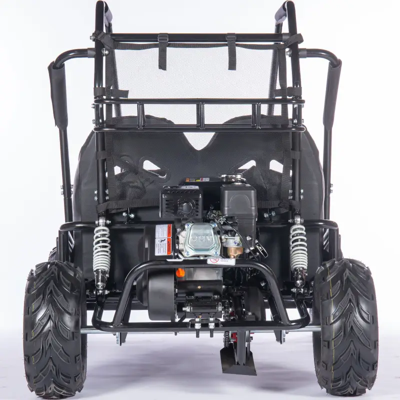 Introducing the new MotoTec Mud XL 212cc 4-Stroke 2-Seater Kids Off-Road Go-Kart with Front and Rear Suspension! It features a powerful 212cc 4-Stroke OHV engine, a padded roll bar, metal throttle and brake pedals, an adjustable seat, more headroom than the competition, and a four-point safety harness. Built to last, this go-kart features a pull-start system, a CVT torque converter, a rear rack, and low-pressure tires for optimal grip and ride comfort.