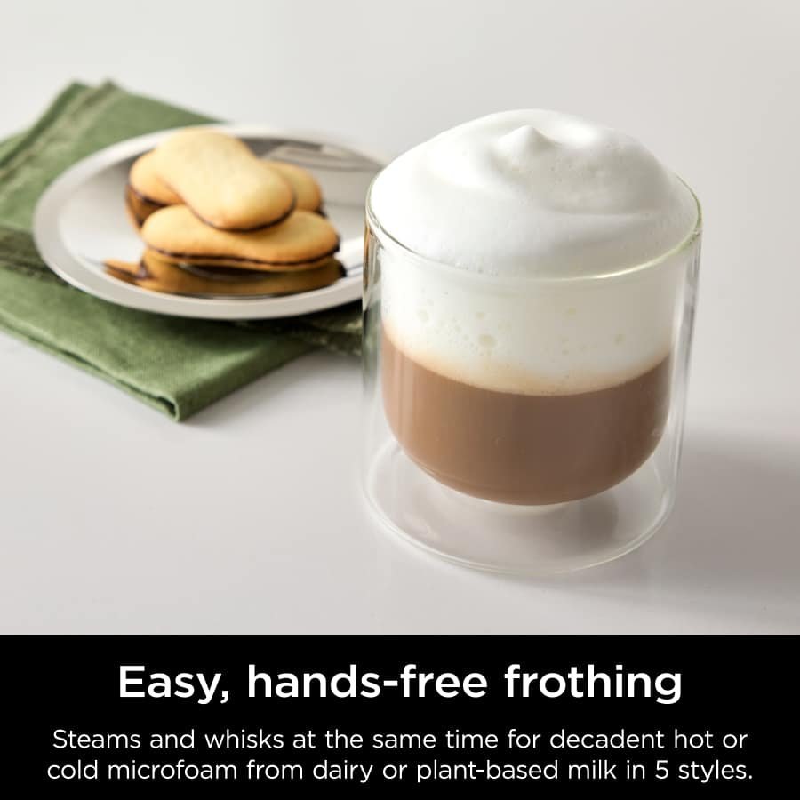 The ultimate guided experience that makes espresso uncomplicated. The Ninja Luxe™ Café Pro Series is an intelligent espresso & coffee system with unmatched 4-in-1 versatility (no guesswork espresso machine, well balanced drip coffee maker, rapid cold brew creator and independent hot water system), that helps you elevate your coffee routine and create café-quality drinks at home. Create perfect pucks at the pull of a lever with the integrated tamper. Barista Assist Technology™ guides you to the perfect cup from grind size recommendations to automated brew adjustments, while the Dual Froth System Pro effortlessly creates perfectly textured microfoam hands-free. Easy-to-clean, insulated steam wand and XL Milk Jug elevate your at-home coffee routine, and create froth for two drinks with 5 preset froth functions including steamed milk, thin froth, thick froth, extra-thick froth, and cold foam.