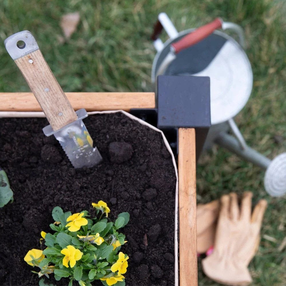 Looking to add a stunning accent to your outdoor space? This elegant yet practical raised planter made from New Growth Grade A Tropical Teak will enhance any area of your home’s exterior. With its powder coated steel accent legs and soft interior liner, this raised planter will maintain its natural quality for years to come. New Growth Grade A Tropical Teak is a hard wood, naturally resistant to decay, rot, water and bugs. And you can feel environmentally confident with the purchase of this raised planter as it is FSC certified, ensuring responsible forest management and renewability. Whether it’s charming blooms you’re planting or delicious herbs and vegetables this Teak raised planter is sure to impress! Drag to spin FEATURES NEW GROWTH GRADE A TEAK: Made from superior performing 100% Grade A Tropical Teak Wood. New Growth Tropical Teak is a hardwood that is naturally durable, resistant to decay and rot, water repellant and sourced from renewable plantation forests ENVIRONMENTALLY RESPONSIBLE: We use New Growth Tropical Teak that is FSC® certified ensuring that products made from this lumber come from responsibly managed forests and are renewable WARRANTY: 5-year limited warranty BUG RESISTANT: Naturally high in oil content, New Growth Grade A Teak is naturally undesirable to wood eating insects NATURAL FINISH: Finished with Tung Oil, our New Growth Grade A Tropical Teak has a natural light finish POWDER COATED STEEL ACCENTS: Planter includes powder coated black steel accent legs and hardware EASY DRAINAGE: Wide bottom slats and mesh liner for easy drainage LARGE CAPACITY: Overall dimensions: 4 ft x 2 ft 4.5in x 1 ft 9.75in. Depth: 8.5 in deep EASY ASSEMBLY: Pre-cut and pre-drilled for easy assembly ASSEMBLY INSTRUCTIONS English Spanish French SPECS Width Depth Height Assembled Dimensions 3′ 8″ x 2′ 0″ x 1′ 9″ Weight: 70 lbs 5 Year Limited Warranty Box 1: 45 3/4″ x 10 3/4″ x 5 3/4″ Weight: 30 lbs. Box 2: 48 ” x 11 ” x 4 3/4″ Weight: 39 lbs