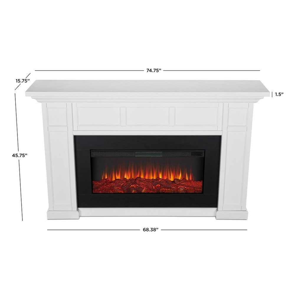 - Fireplace: 74.75″L x 15.75″W x 45.75″H; 161 lbs