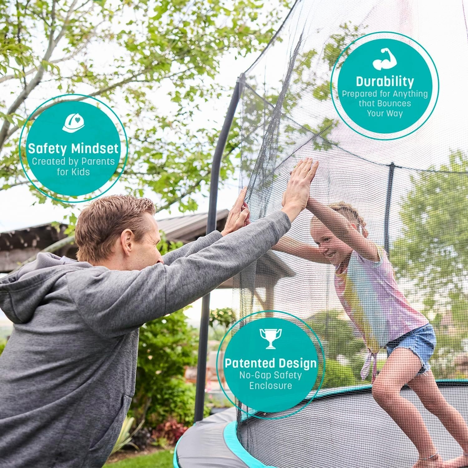 · Patented No-Gap Enclosure System – Eliminates dangerous gaps between the jump mat and net